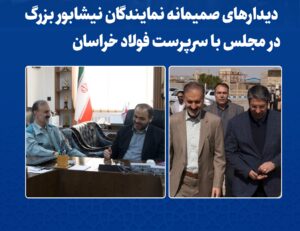 دیدار با نمایندگان نیشابور بزرگ در مجلس شورای اسلامی و بازدید میدانی از پروژهی احداث محموعه ورزشی آبی دانشآموزی در شهرستان فیروزه تصویری از پیگیریهای مدیریت ارشد فولاد خراسان در حوزه مسئولیتاجتماعی شرکت بود که امروز دوشنبه ۴ اسفند ۱۴۰۴ رقم خورد.